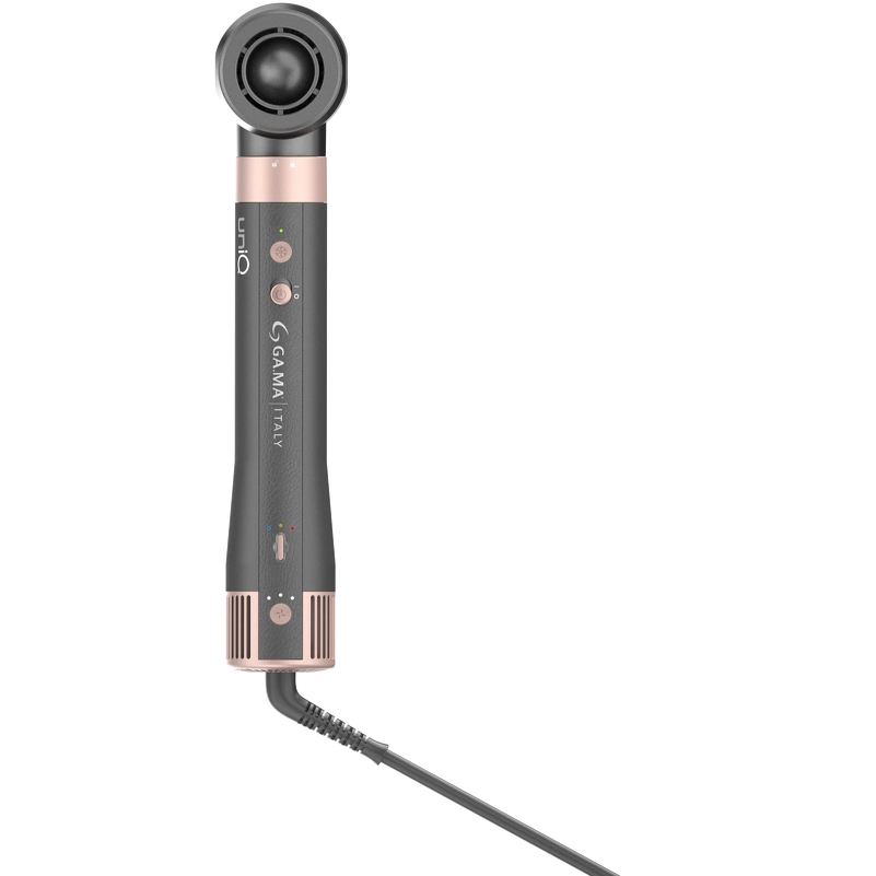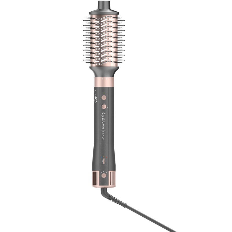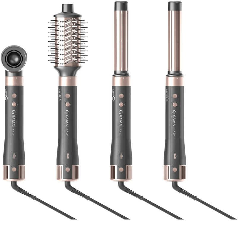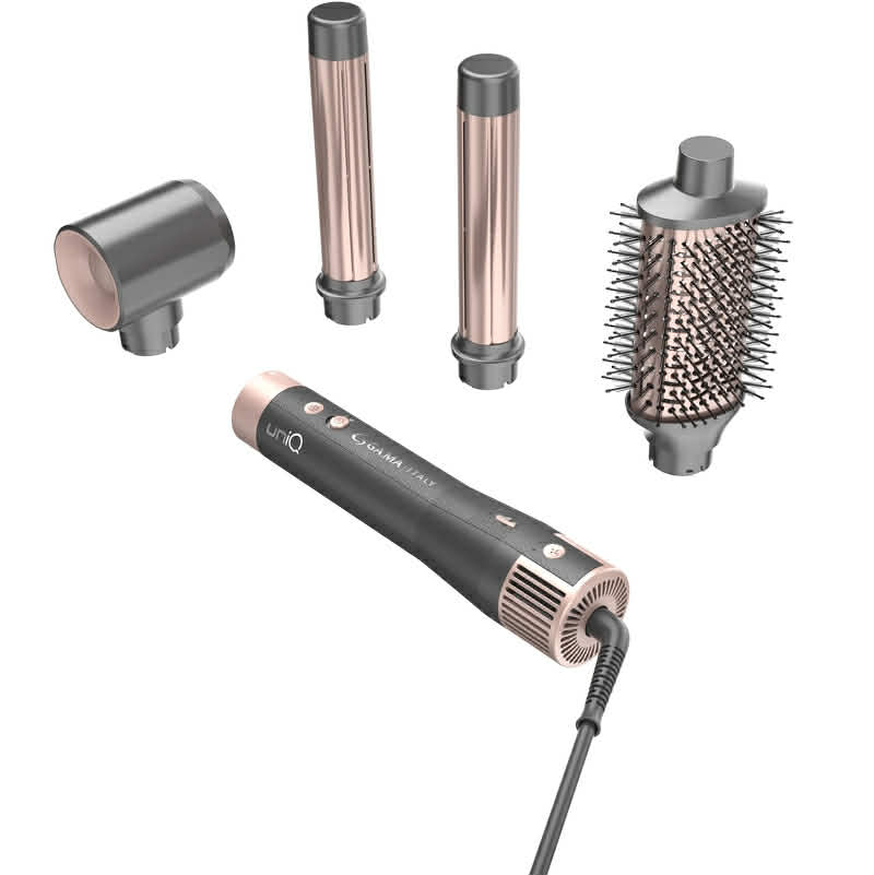 Gama Professional Uniq Aura 6-In-1 Multi-Styler er multifunktionelle stylingværktøjer med digital brushless motor. Tourmaline-teknologien udleder negative ioner, der giver håret glans og mindsker statisk elektricitet. Coanda-effekten sørger for, at luftstrømmen naturligt former håret, hvilket giver smukke krøller og bølger med mindre frizz.