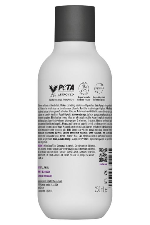 Balsam med violette pigmenter, der neutraliserer gule toner i blondt, gråt eller lysnet hår. Bevarer en kold, klar farve og giver fugt og glans.