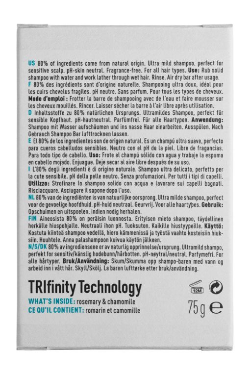 Ultramilde shampoobar uden parfume – renser skånsomt både hår og krop og fjerner buildup. Perfekt til sensitiv hovedbund og daglig brug.