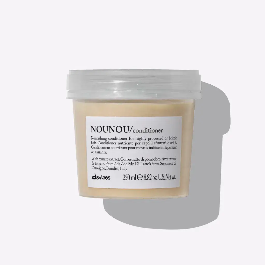 Værd at vide: Davines Essential NOUNOU Conditioner er en del af Davines’ Essential Haircare-serie, som kombinerer naturlige ingredienser som koncentreret tomatekstrakt fra Mr. di Latte’s farm i Serranova di Carovigno, Brindisi, Italien, med bæredygtige produktionsmetoder. Serien er fri for sulfater og parabener, og produkterne er designet til at være både skånsomme mod håret og miljøet.